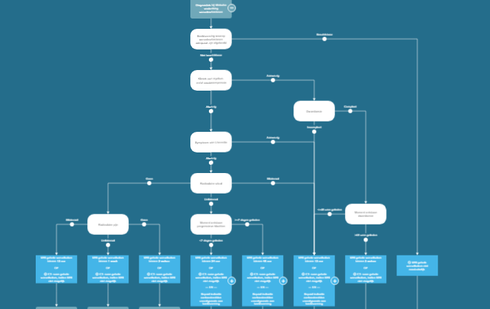 Een beslisboom over de diagnostiek en behandeling van wervelmetastasen is nu beschikbaar voor zorgprofessionals in Oncoguide. Samen met multidisciplinaire vertegenwoordigers van de werkgroep richtlijn wervelmetastasen onder voorzitterschap van dr. Walter Taal, neuroloog van het ErasmusMC is de richtlijn uit 2015 vertaald naar algoritmes in de vorm van heldere beslisbomen.